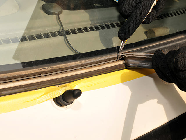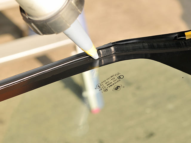 新しく取りつけるガラスに専用の接着剤を塗布します。